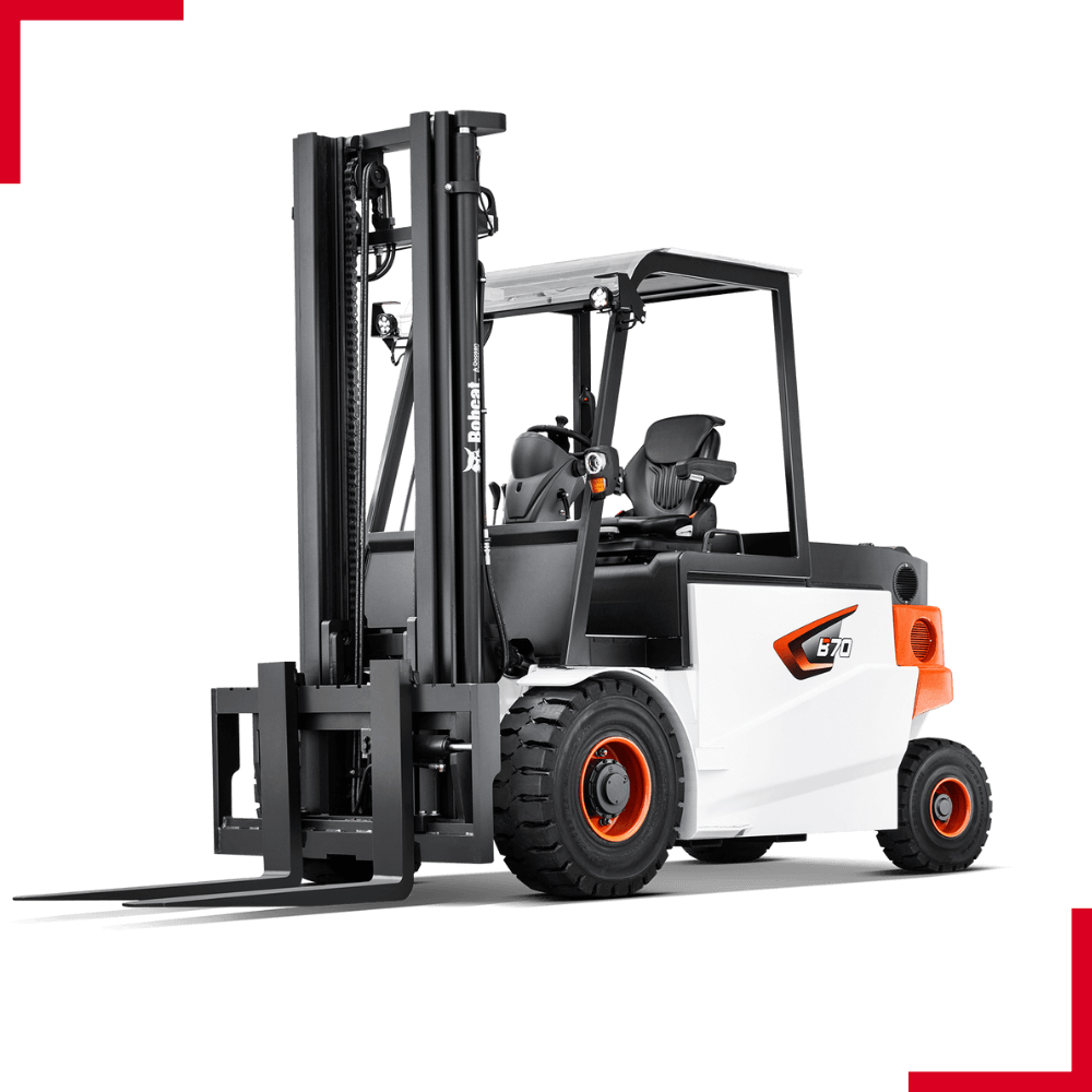 Bobcat’s four-wheel NXE-Series 6.0 – 8.0 tonne electric forklifts are built for single-shift operations and lower energy use. They come well equipped as standard with advanced comfort and productivity features, offering competitive pricing and a low total cost of ownership. Easy access, excellent visibility and effortless, intuitive driving help boost efficiency and operator comfort.